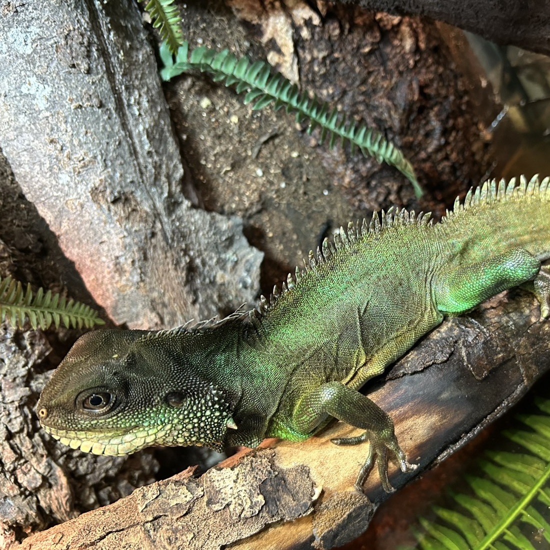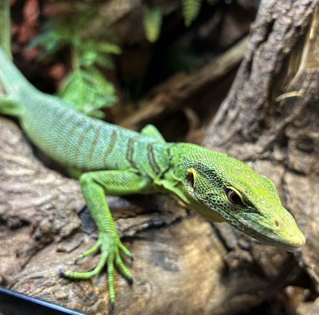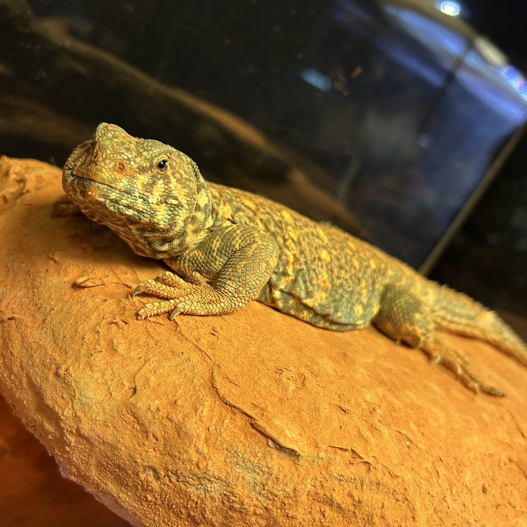 您在 DMM KARIYUSHI水族馆可以见到的两只鬣蜥都是白化绿鬣蜥。但尺寸却完全不同。即使是小鬣蜥也能长到近2米长!我对未来的成长充满期待!